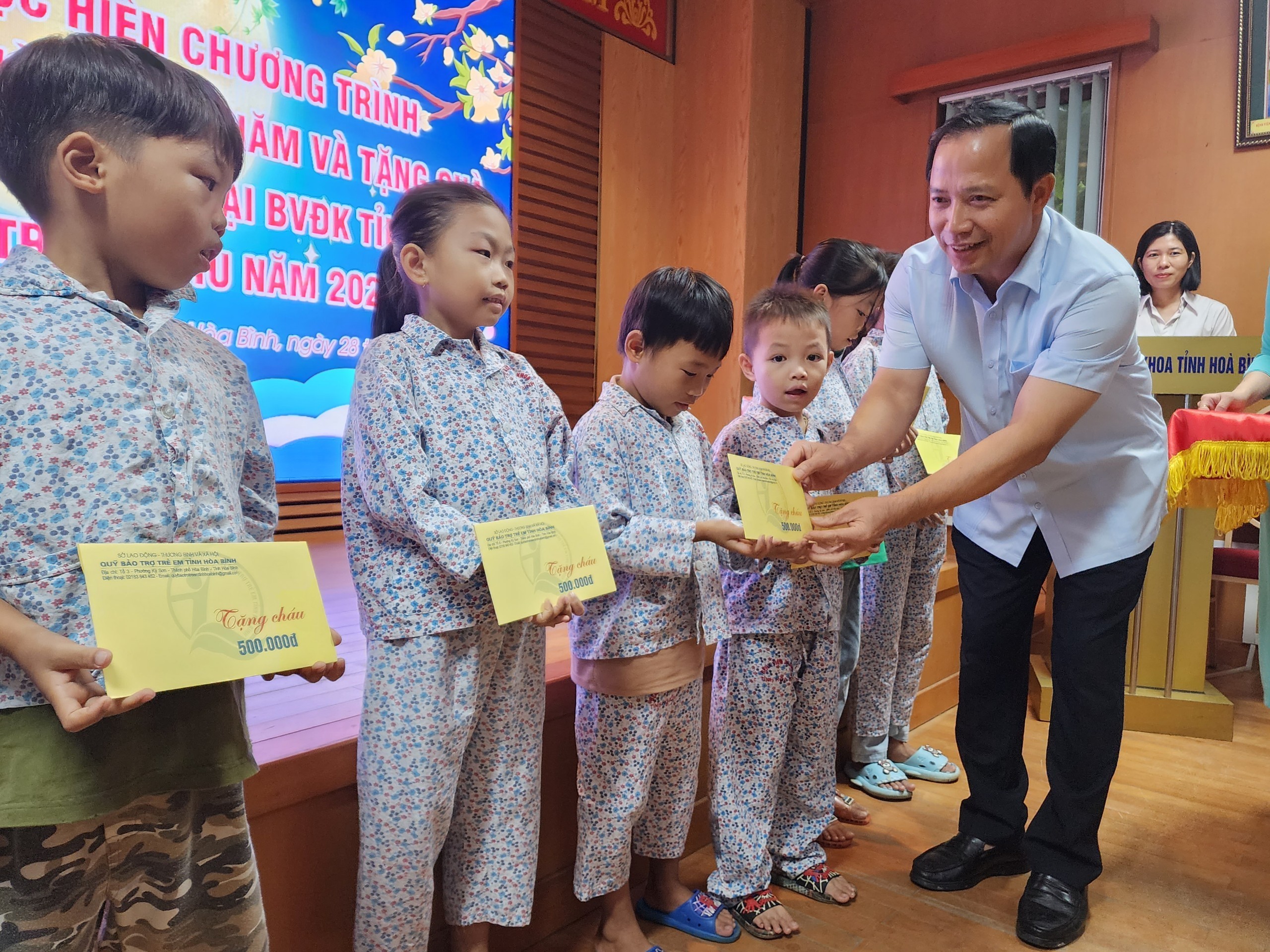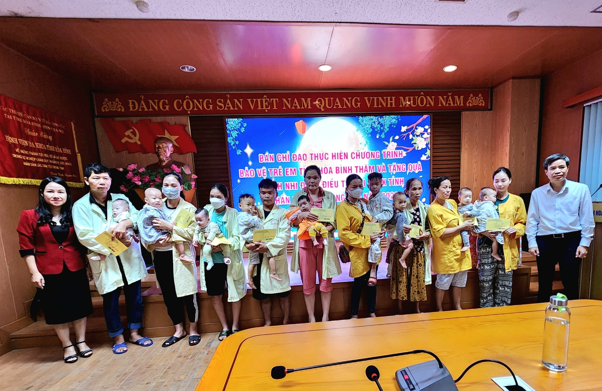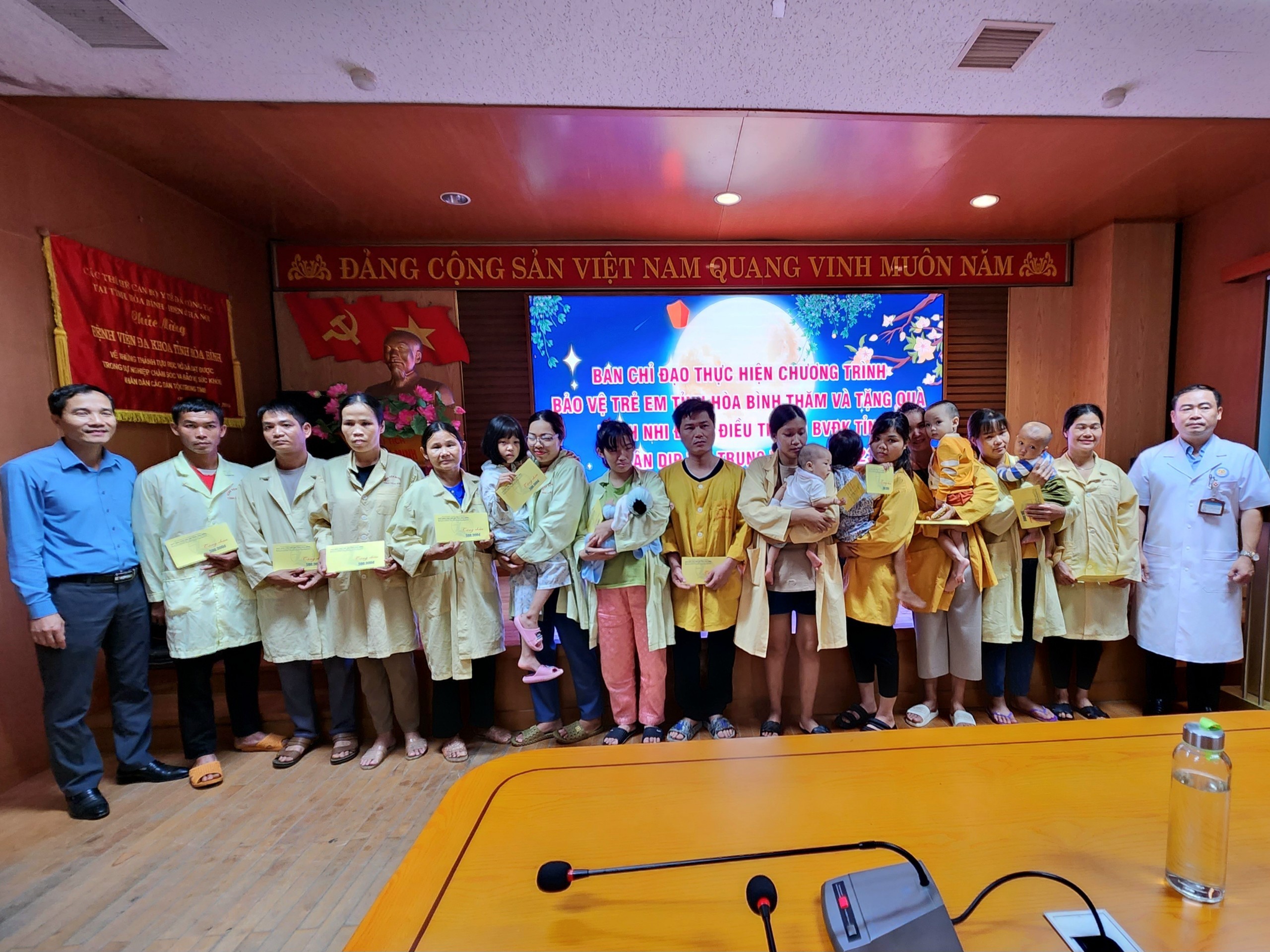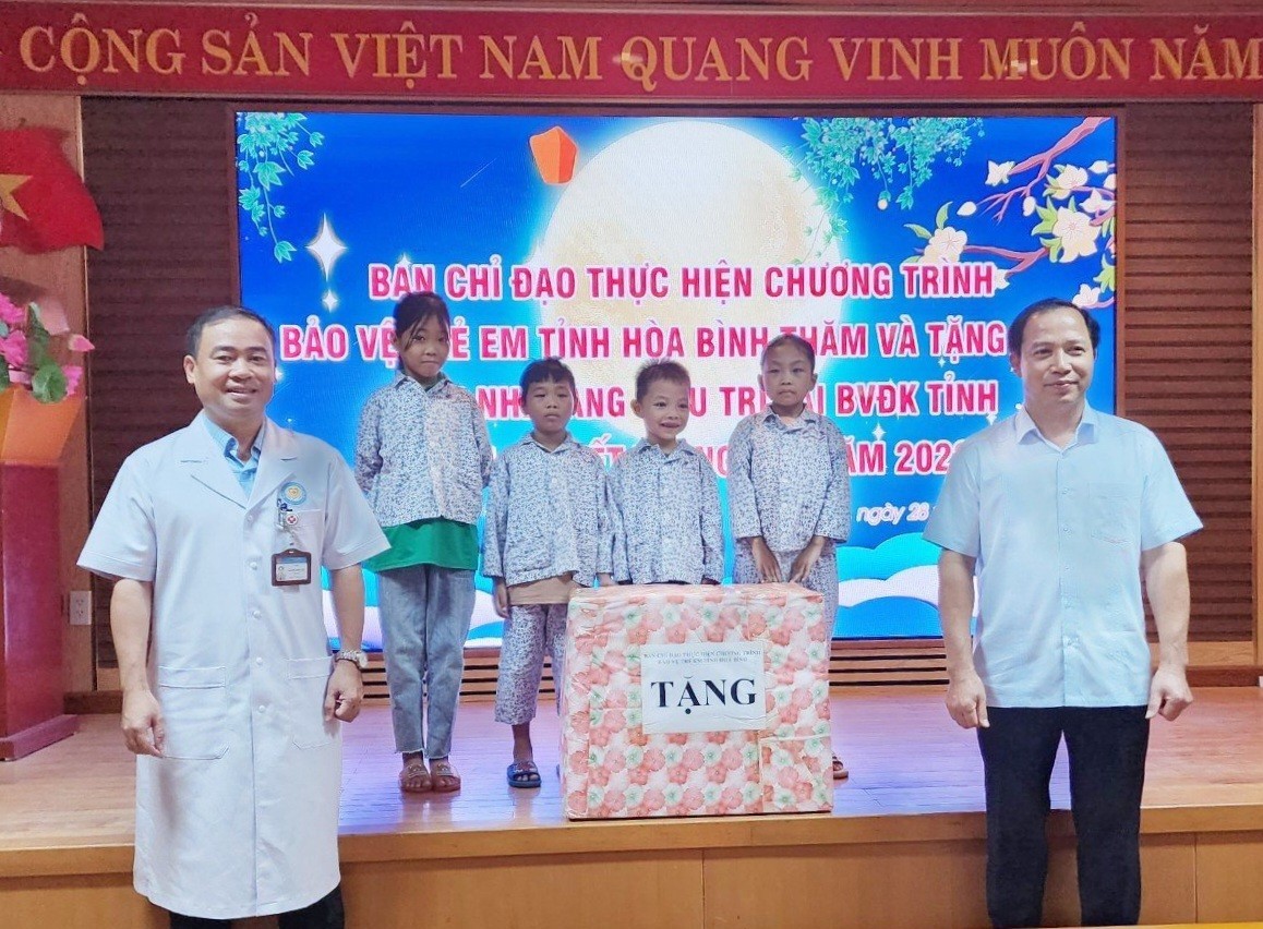 Trước đó, cùng với sự quan tâm của các cấp ngành, cá nhân và tổ chức từ thiện, Bệnh viện Đa khoa tỉnh Hoà Bình cũng đã tiếp nhận 189 suất quà là tiền mặt với tổng giá trị trên 46 triệu đồng cùng nhiều quà tặng, đồ chơi và bánh trung thu được trao tận tay các bệnh nhi đang điều trị tại Bệnh viện tỉnh.
