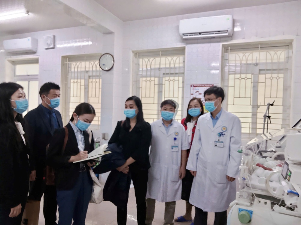Tại chương trình làm việc, đoàn công tác và Công ty APEL đã tiến hành tham quan trực tiếp tại khoa Nhi, địa điểm đặt thiết bị; tiến hành các nghiệp vụ đánh giá thực trạng, ưu nhược điểm, tính phù hợp, những thuận lợi, khó khăn trong quá trình vận hành và sử dụng thiết bị. Đây là nội dung quan trọng để phía tổ chức JICA và Công ty APEL có những báo cáo chi tiết và lập kế hoạch, phương án điều chỉnh cũng như tiến hành những thay đổi cần thiết cho các nghiên cứu sâu hơn đối với các dự án đã triển khai.
