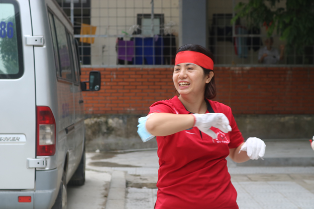 Vận động viên tổ công đoàn khoa Kiểm soát nhiễm khuẩn khởi động trước giờ thi đấu