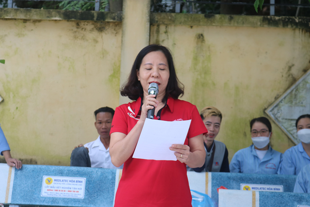 Đồng chí Bàn Thị Thanh Huyền, Chủ tịch Công đoàn khối Liên khoa phát biểu khai mạc Hội Thi
