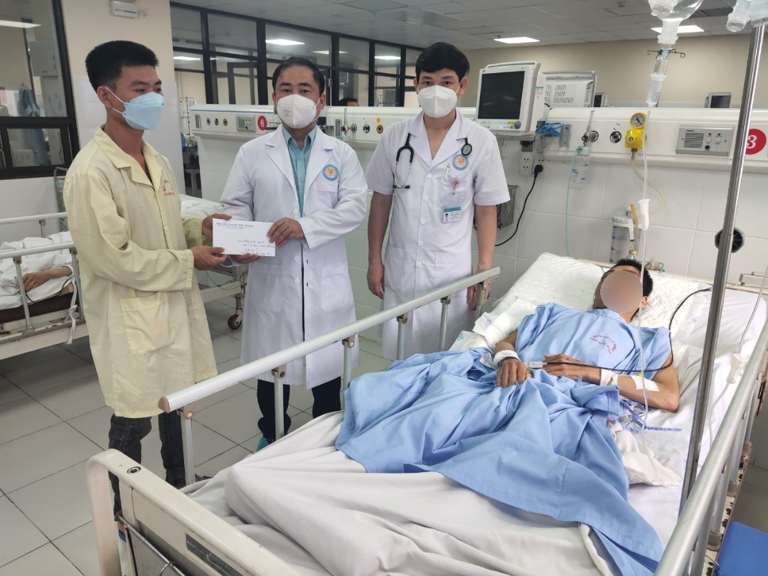 TS.BS Nguyễn Hoàng Diệu, Giám đốc Bệnh viện đến thăm và trao tiền hỗ trợ cho người bệnh