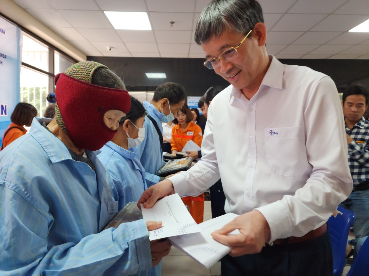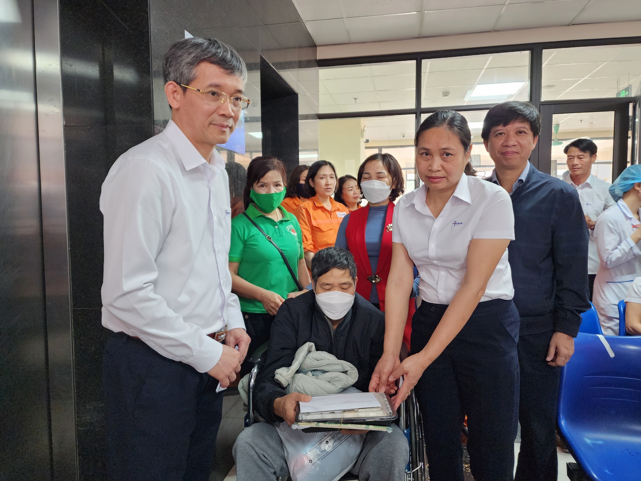 Ông Phạm Văn Vương, Bí thư đảng uỷ, Giám đốc Công ty Thuỷ điện Hoà Bình trao quà cho bệnh nhân chạy thận