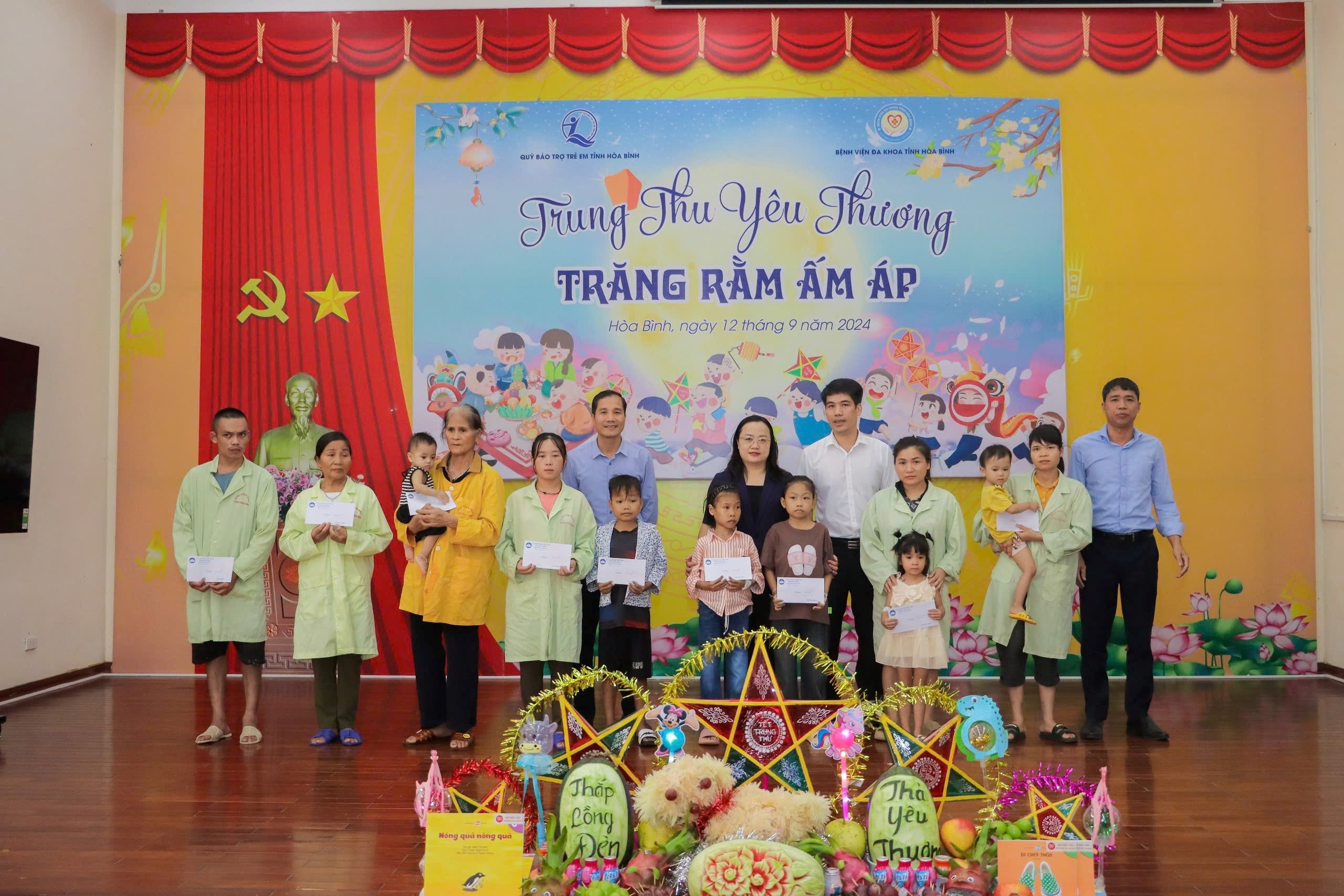 Ngày 12/9/2024, Bệnh viện Đa khoa tỉnh Hoà Bình phối hợp với Quỹ bảo trợ trẻ em tỉnh Hoà Bình tổ chức chương trình Tết Trung thu năm 2024 cho các bệnh nhi đang điều trị nội trú tại Bệnh viện Đa khoa tỉnh. Tham dự có đồng chí lãnh đạo UBMT Tổ quốc Việt Nam tỉnh Hòa Bình, đại diện lãnh đạo Sở Y tế, Sở Lao động – Thương binh và Xã hội tỉnh, Bệnh viện Đa khoa tỉnh, Trung tâm Công tác xã hội và Quỹ Bảo trợ trẻ em tỉnh và đông đảo bệnh nhi cùng người nhà.