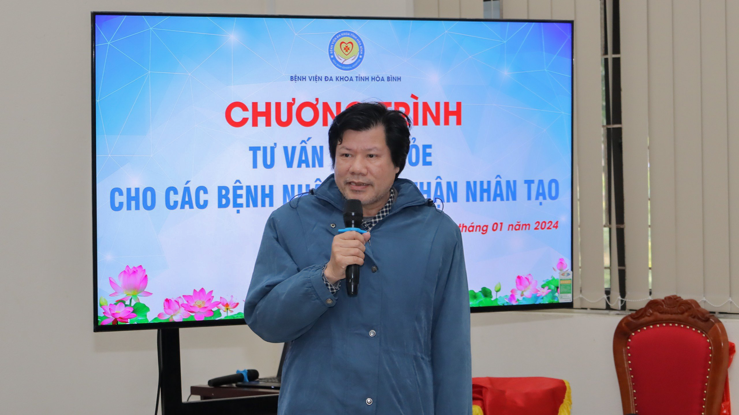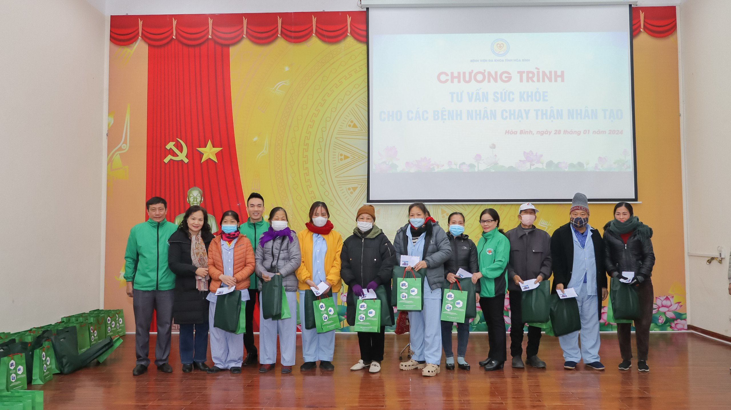 Ngày 28/01/2024, tại Hội trường lớn Bệnh viện Đa khoa tỉnh Hòa Bình đã diễn ra chương trình tư vấn sức khỏe và tặng quà Tết Nguyên đán Giáp Thìn cho Bệnh nhân lọc máu chu kỳ (chạy thận nhân tạo) tại Bệnh viện Đa khoa tỉnh. Tham dự có TS.BS Nguyễn Hoàng Diệu, Giám đốc Bệnh viện Đa khoa tỉnh và lãnh đạo một số khoa phòng cùng 224 bệnh nhân chạy thận tham dự đông đủ. Chuyên gia tư vấn chăm sóc sức khỏe cho bệnh nhân chạy thận là TS.BS Nguyễn Hữu Dũng, Chủ tịch Hội lọc máu Việt Nam. Ông cũng là người đã dành nhiều tâm huyết, tình cảm, cùng các đồng nghiệp của mình quyên góp quà dành tặng cho bệnh nhân chạy thận tại chương trình.