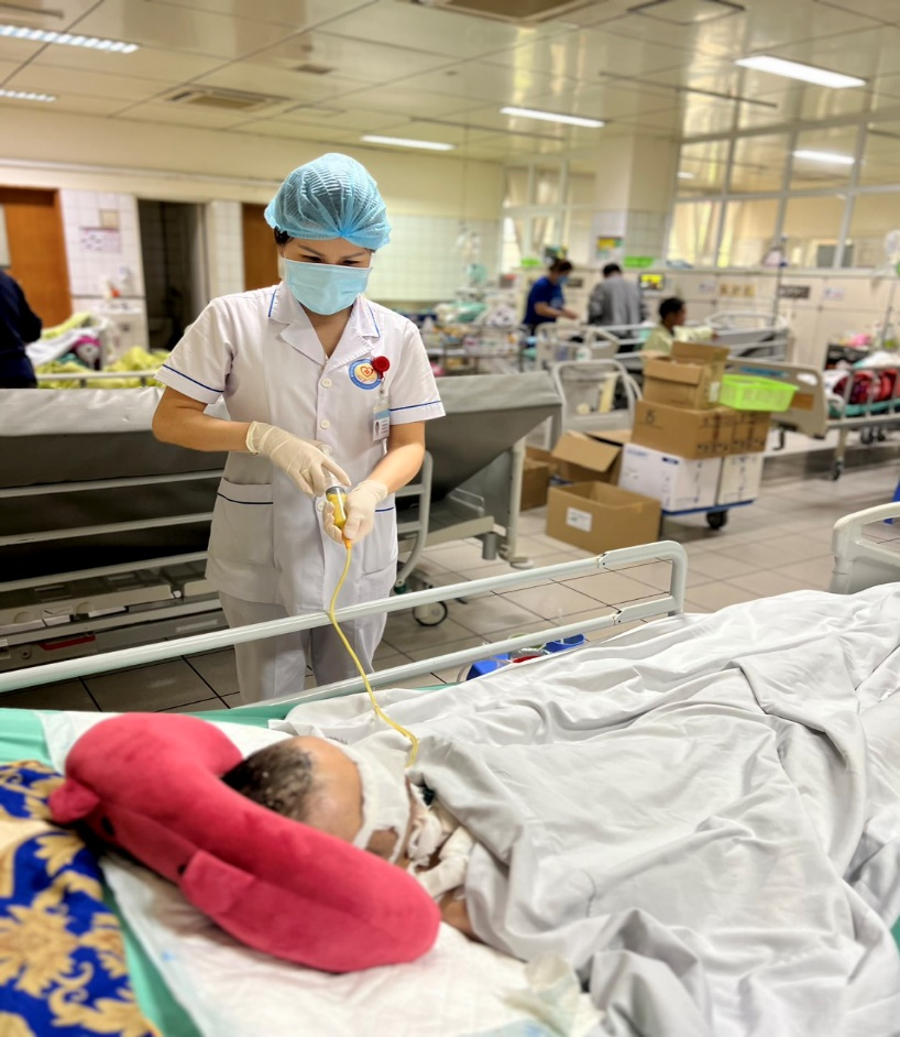 Nhân viên khoa dinh dưỡng cho bệnh nhân ăn qua sonde
