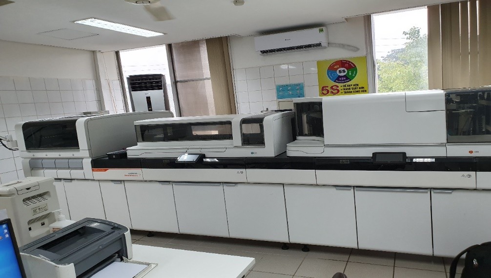 - Cuối năm 2021 đầu năm 2022 khoa được trang bị hệ thống hiện đại máy sinh hóa tích hợp miễn dịch Atellica simens