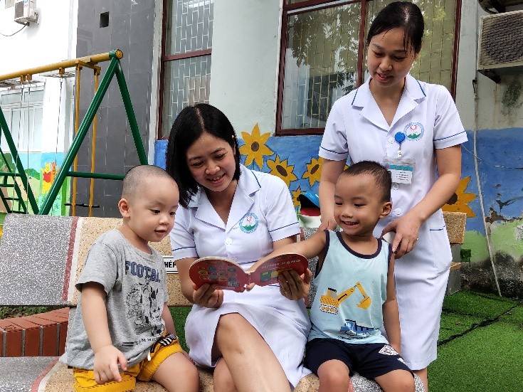 Hình ảnh đẹp về Điều dưỡng khoa vui chơi, động viên tinh thần các bệnh nhi đang điều trị