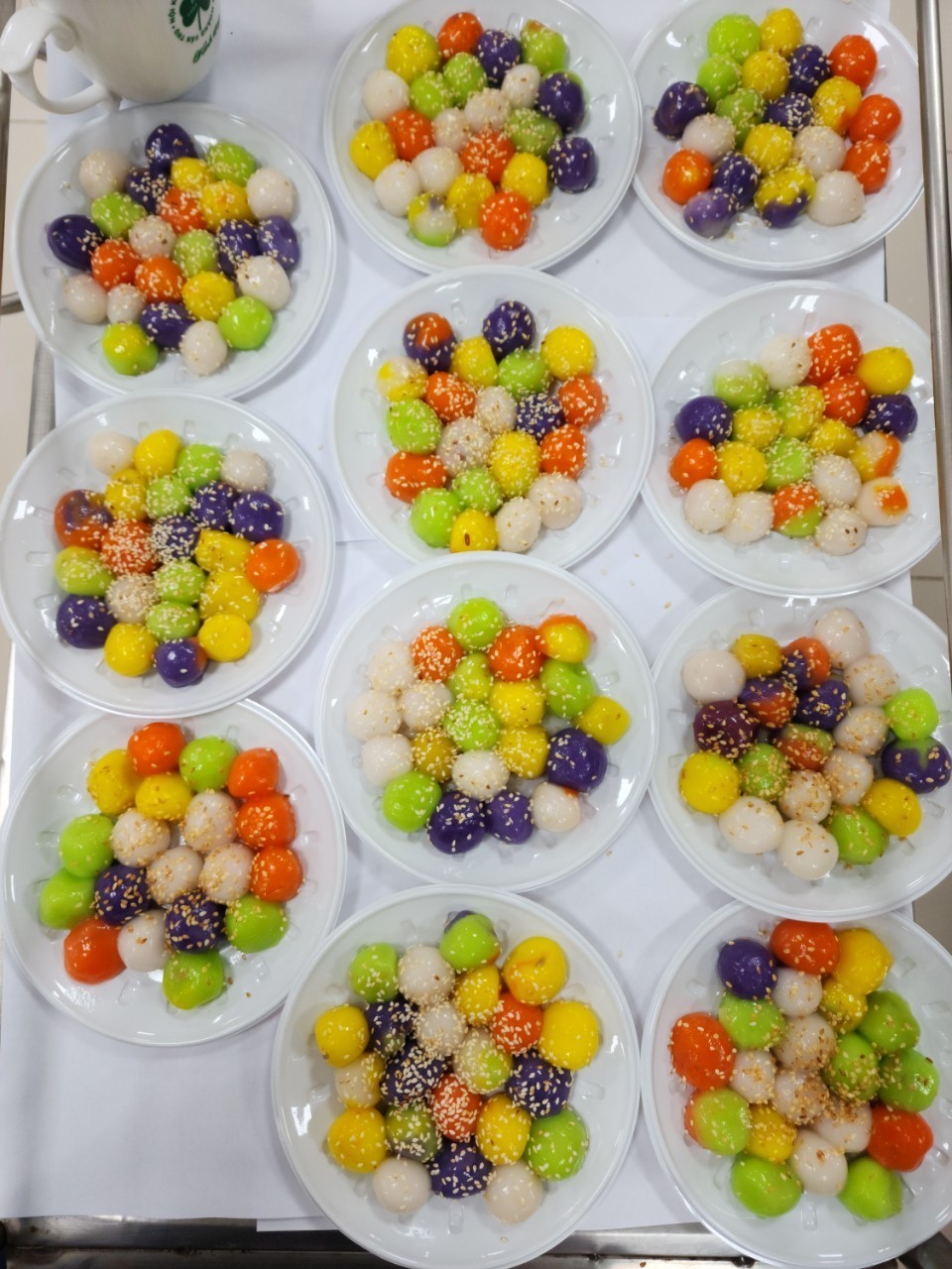 Thành phẩm là những đĩa bánh trôi ngũ sắc bắt mắt