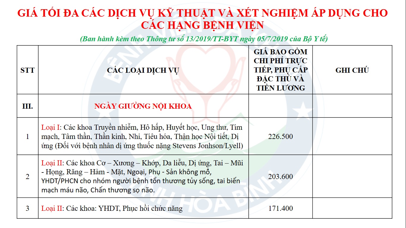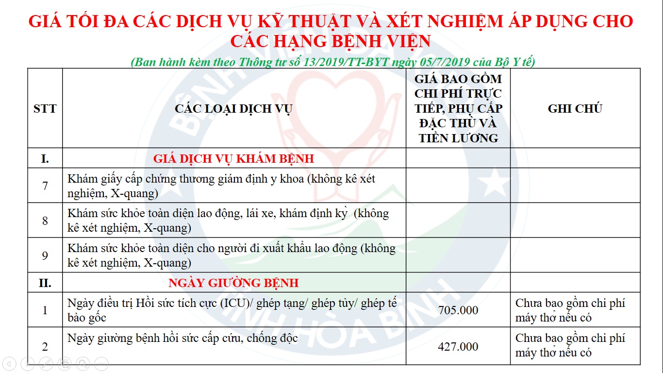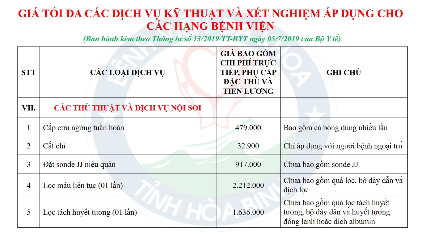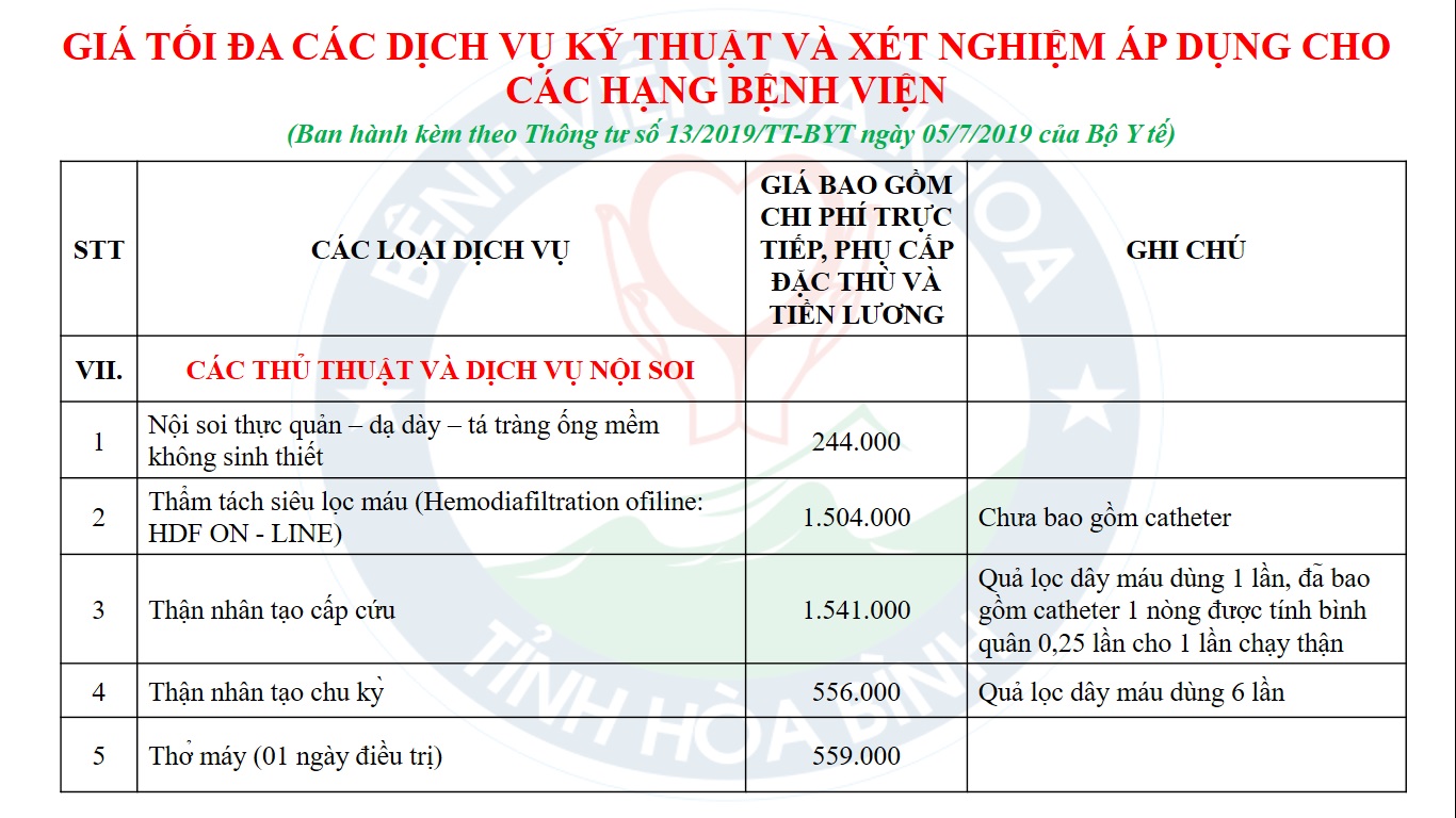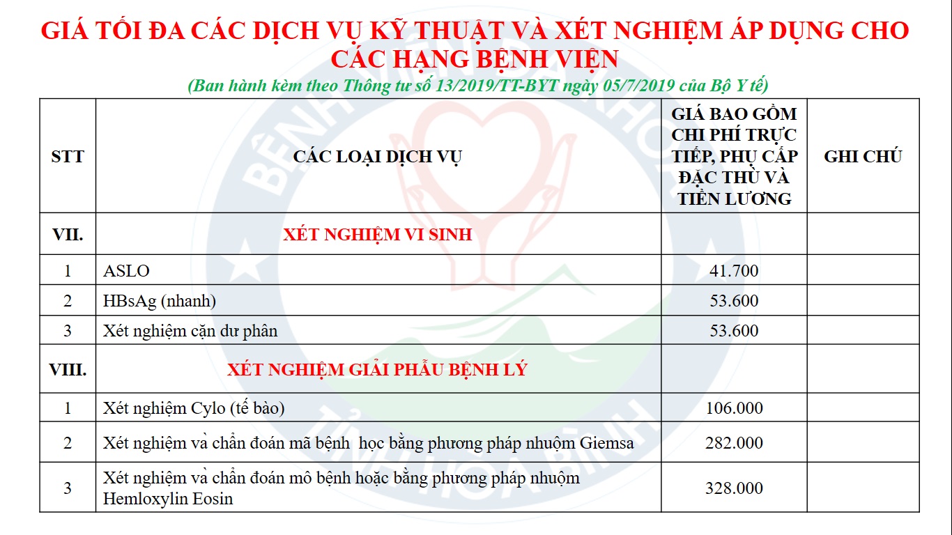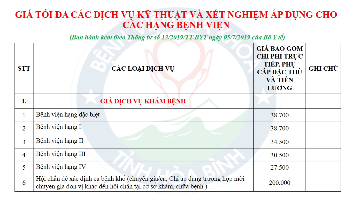 Bảng giá dịch vụ Y tế theo Thông tư 13/2019/TT-BYT