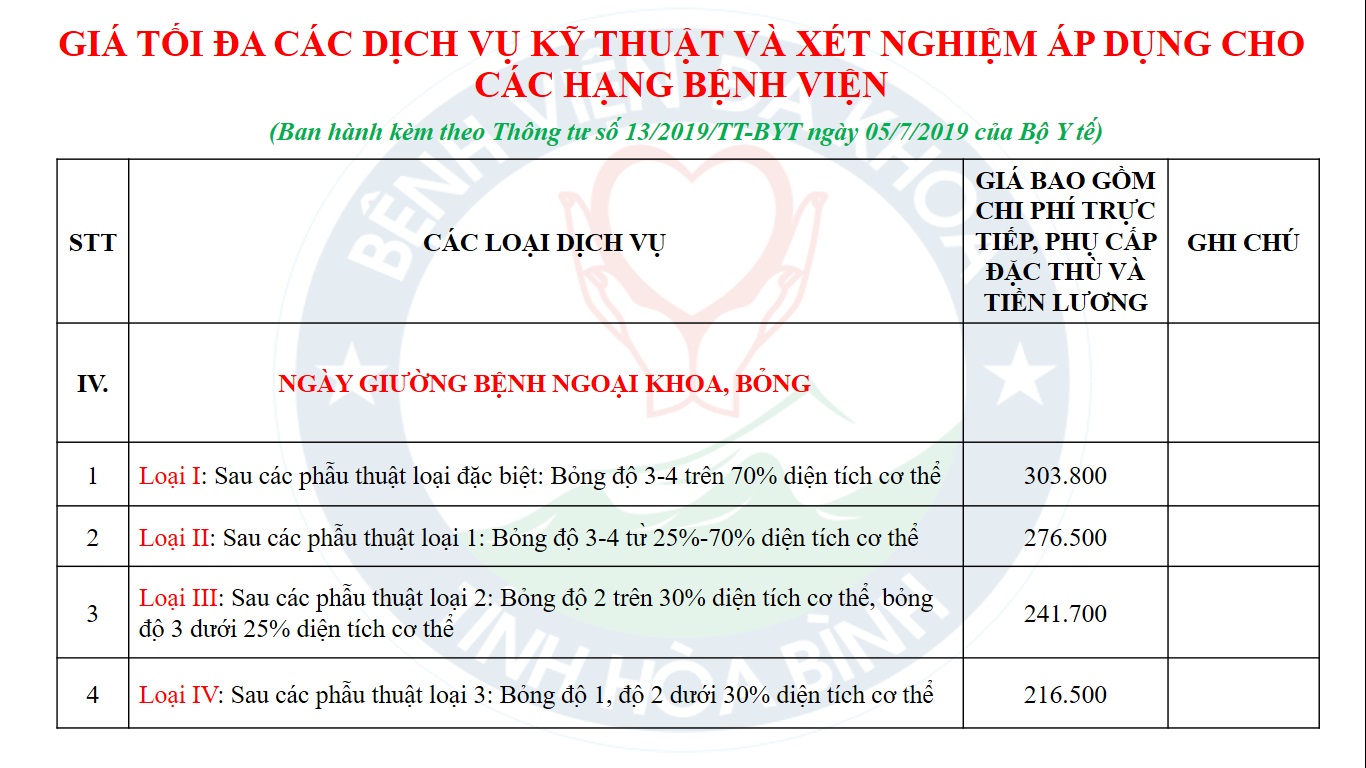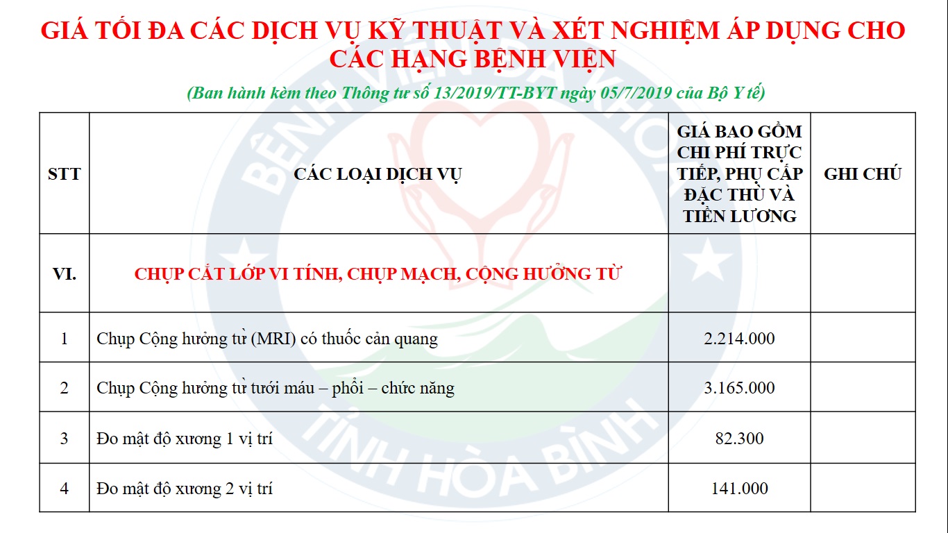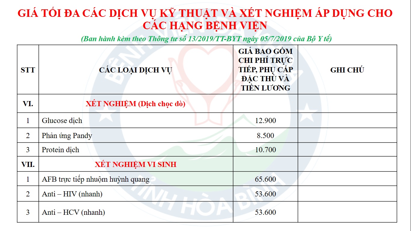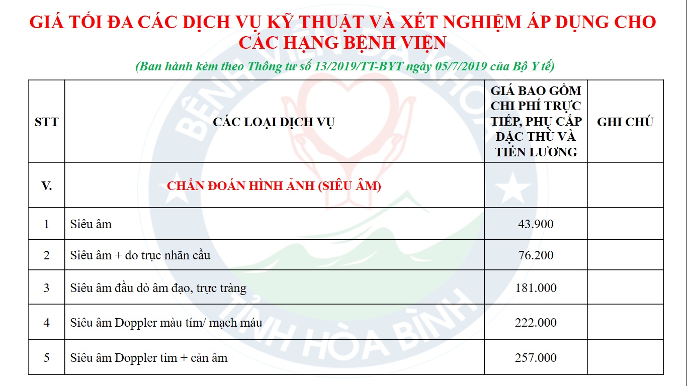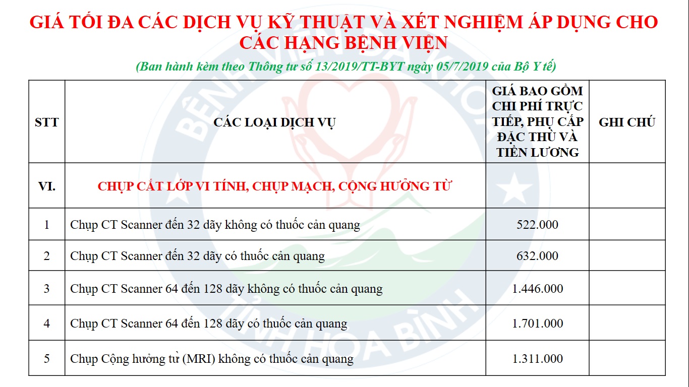 Bảng giá dịch vụ Y tế theo Thông tư 13/2019/TT-BYT