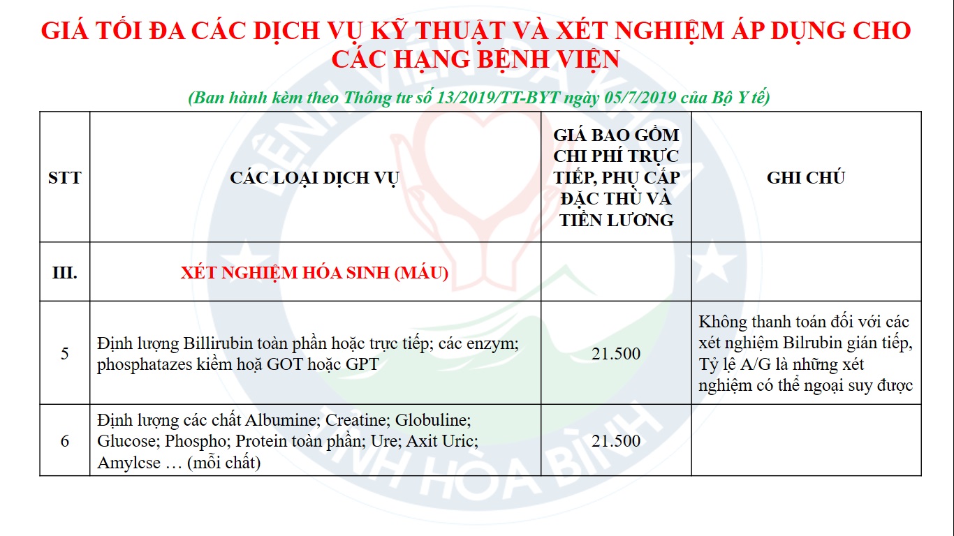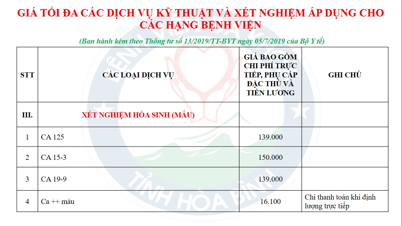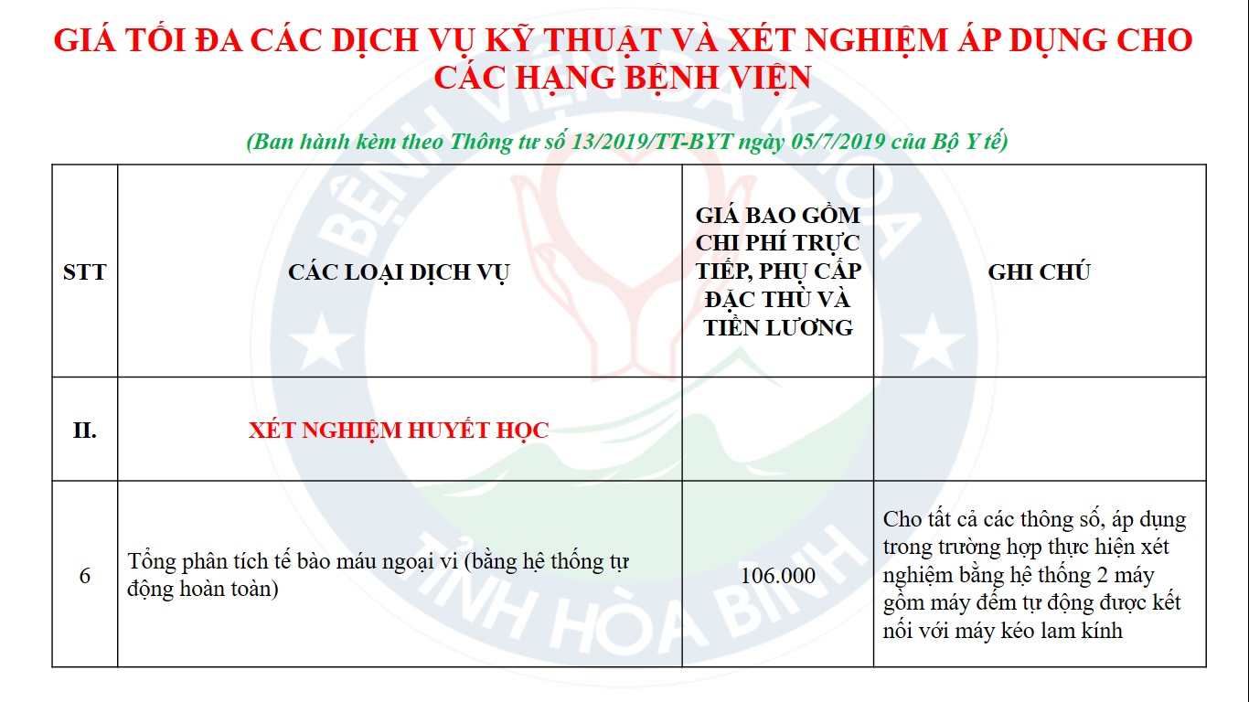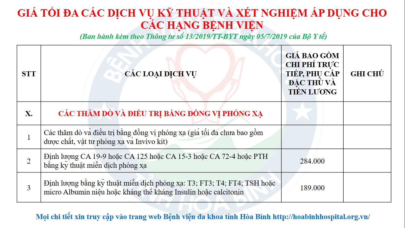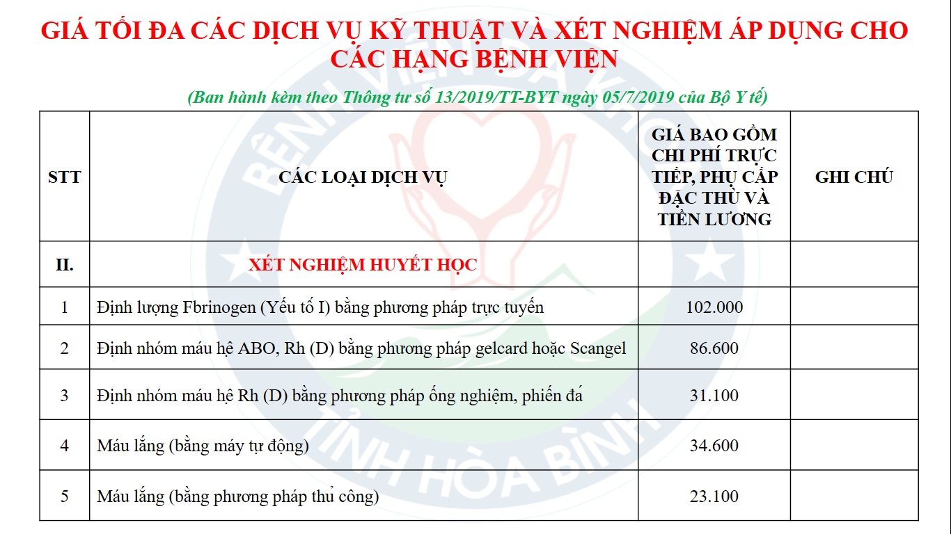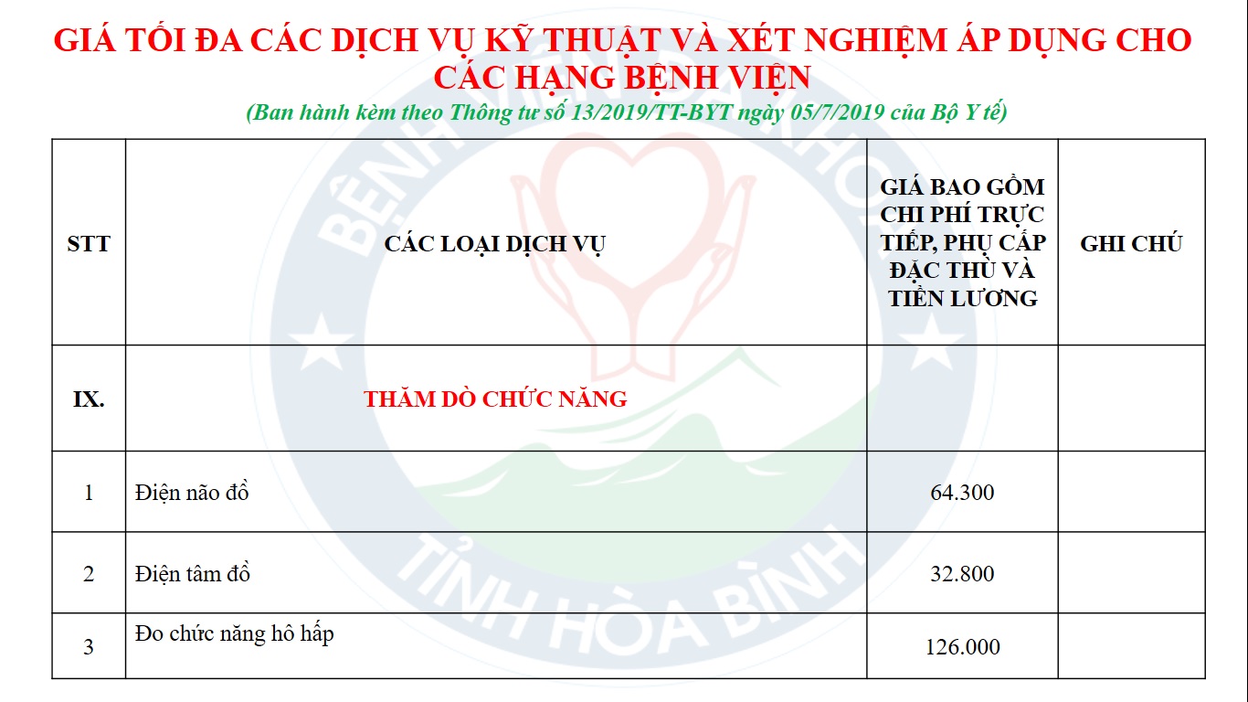 Bảng giá dịch vụ Y tế theo Thông tư 13/2019/TT-BYT