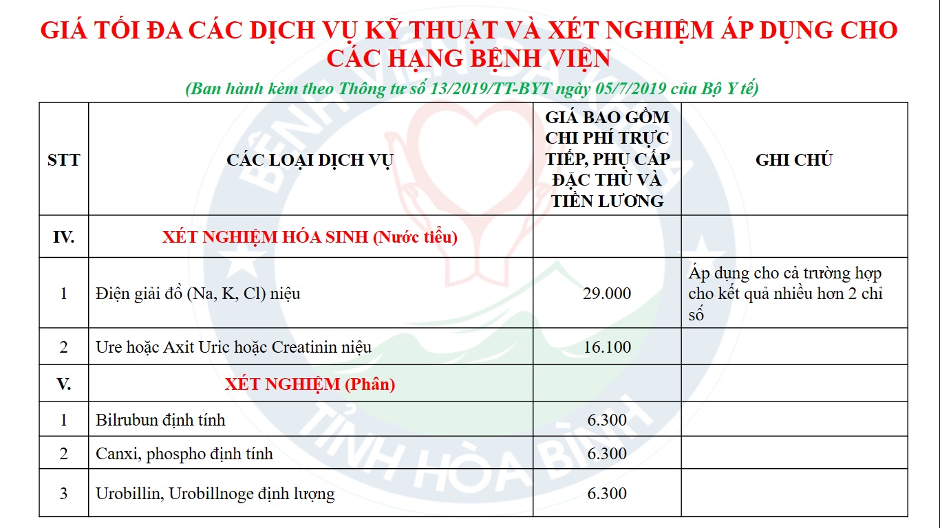 Bảng giá các dịch vụ Kỹ thuật và xét nghiệm