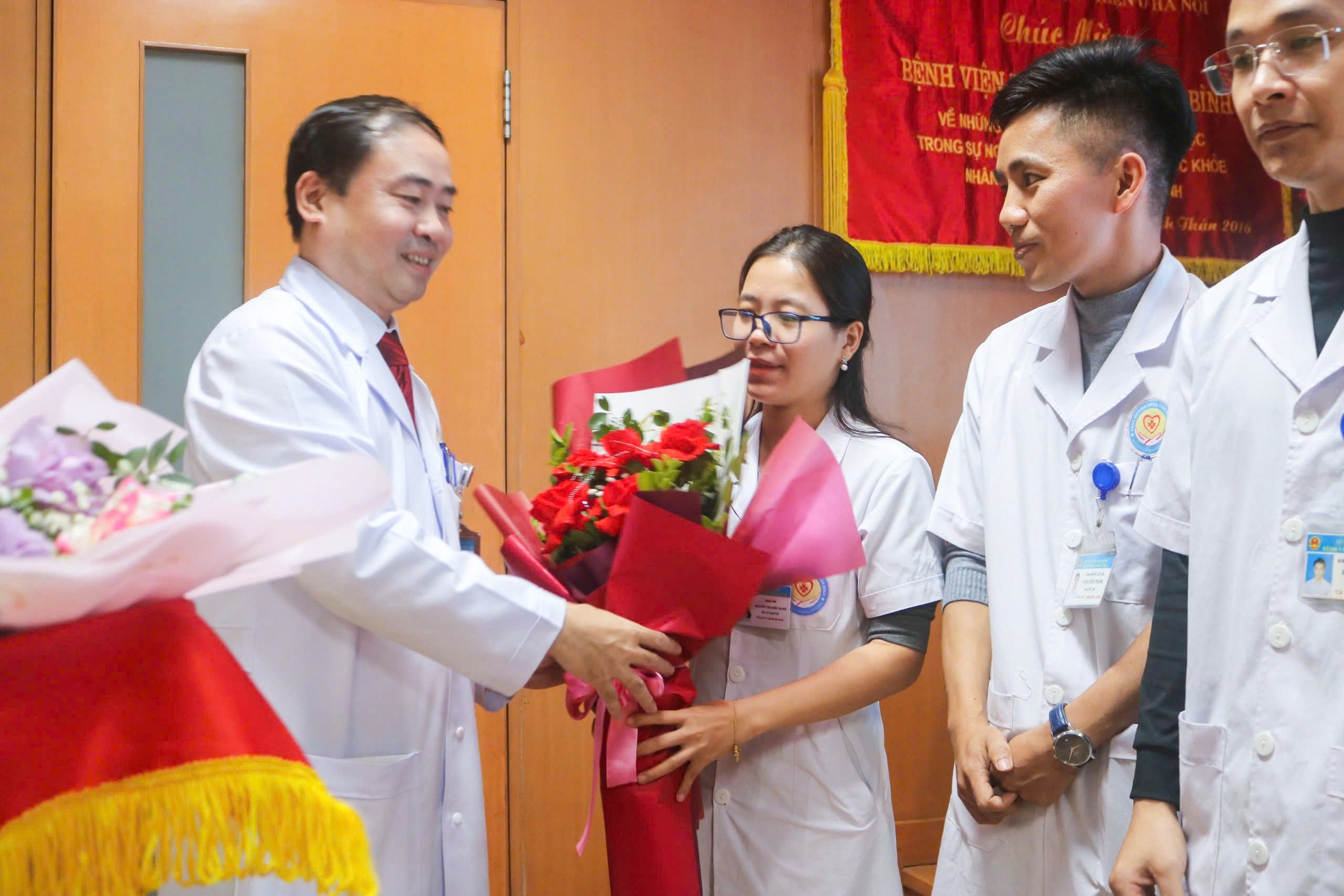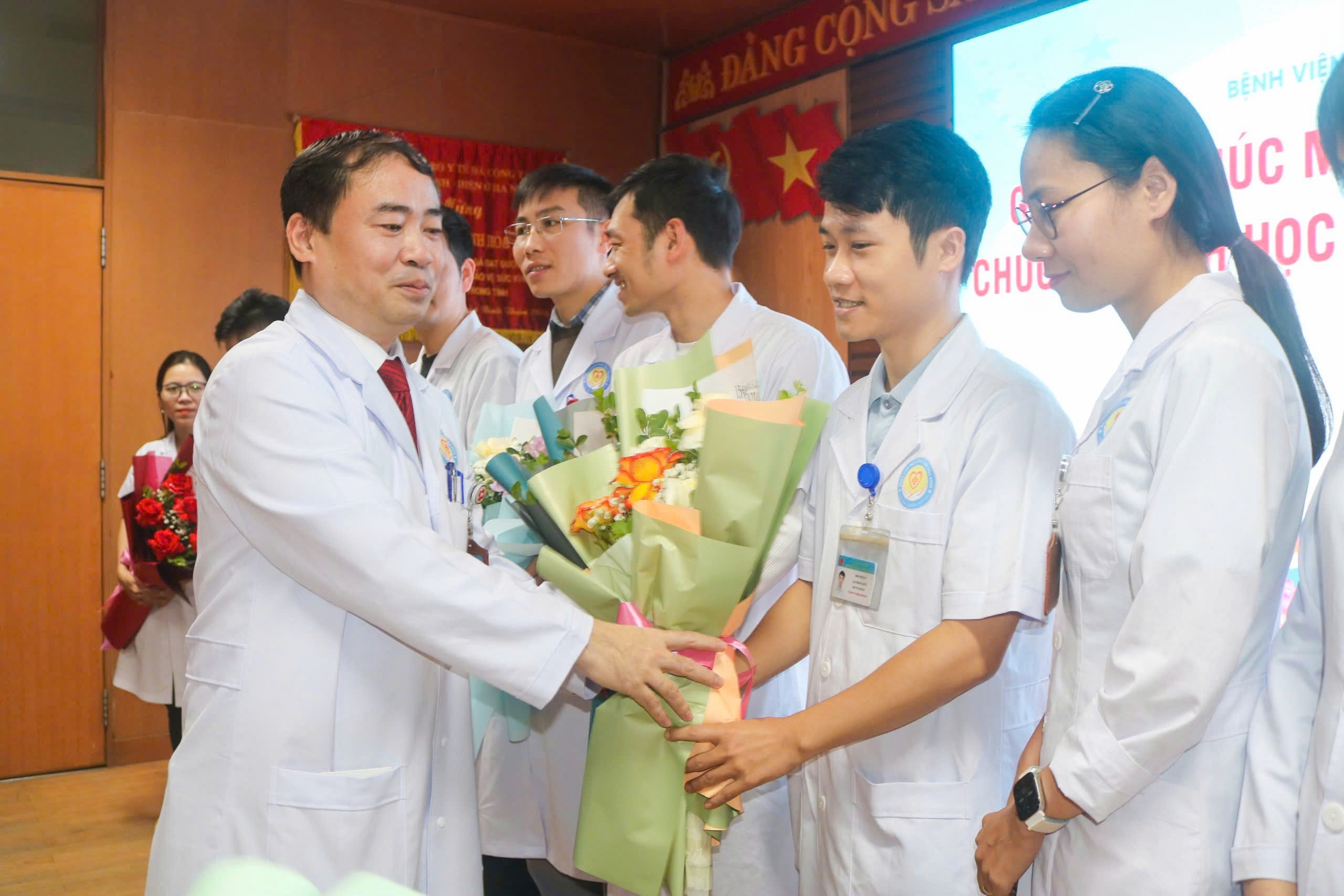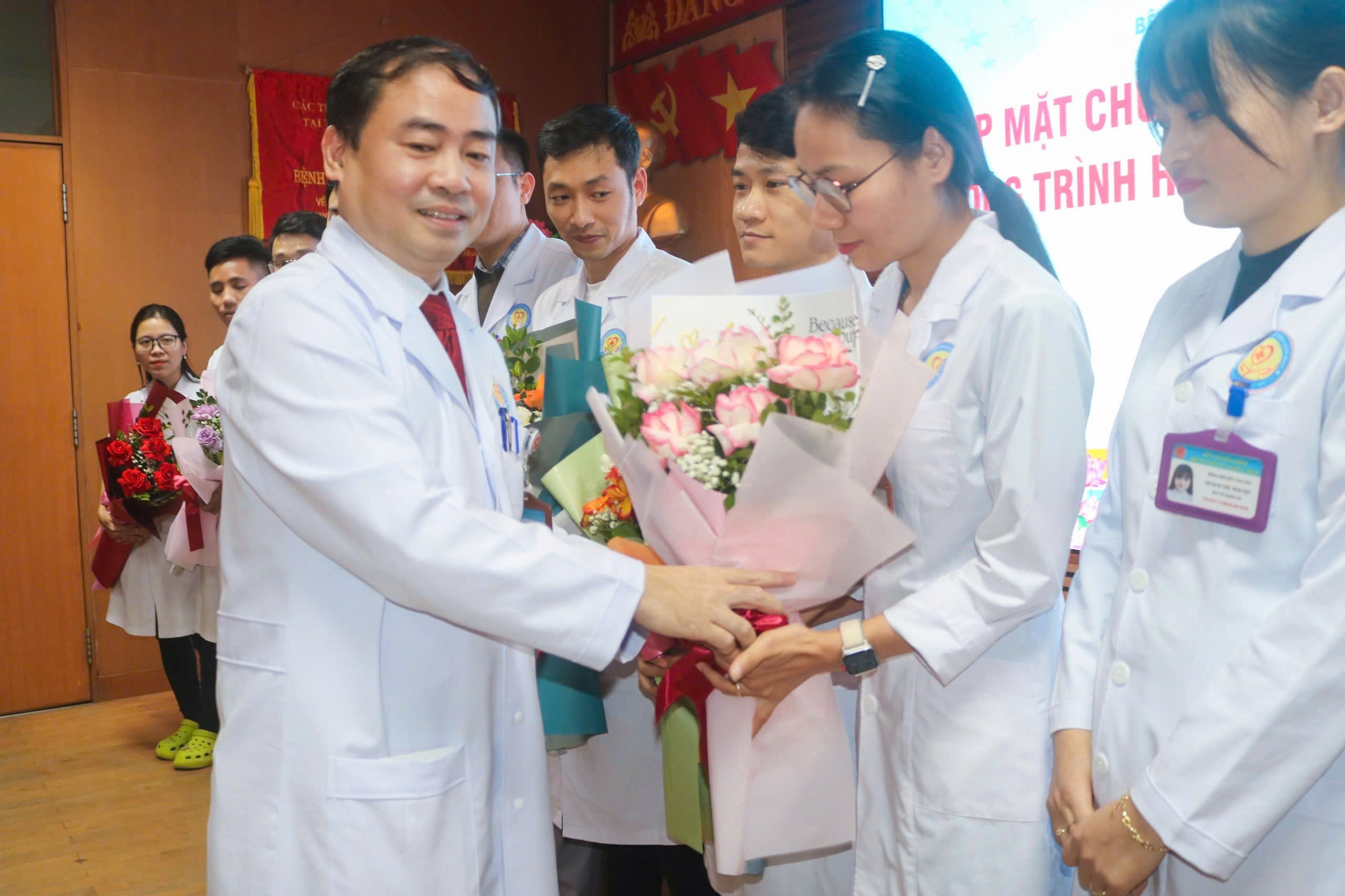 Phát biểu tại chương trình, TTƯT.TS.BS Nguyễn Hoàng Diệu, Giám đốc Bệnh viện chúc mừng các cán bộ đã hoàn thành chương trình học sau đại học năm 2024. Đồng chí Giám đốc đánh giá cao sự cố gắng, nỗ lực của các cán bộ trong thời gian qua. Việc tốt nghiệp bác sỹ chuyên khoa cấp II, chuyên khoa cấp I không chỉ khẳng định chuyên môn vững vàng của các bác sỹ mà còn minh chứng cho tinh thần học tập, rèn luyện không ngừng của các bác sỹ, dược sỹ. Các bác sỹ được đào tạo bài bản, chuyên sâu ở nhiều lĩnh vực như Nội khoa, Ngoại khoa, HSCC, Nhi khoa…. Đồng chí Giám đốc khẳng định, sự thành công của các cán bộ là niềm tự hào của Bệnh viện Đa khoa tỉnh, và đề nghị các cán bộ sau đại học phát huy những thành quả đạt được, cống hiến và tận tâm trong công việc nhằm góp phần xây dựng Bệnh viện Đa khoa tỉnh ngày càng phát triển lớn mạnh. Nhân dịp này, đồng chí đồng chí Giám đốc cũng gửi những bó hoa tươi thắm tặng các cán bộ hoàn thành chương trình sau đại học.