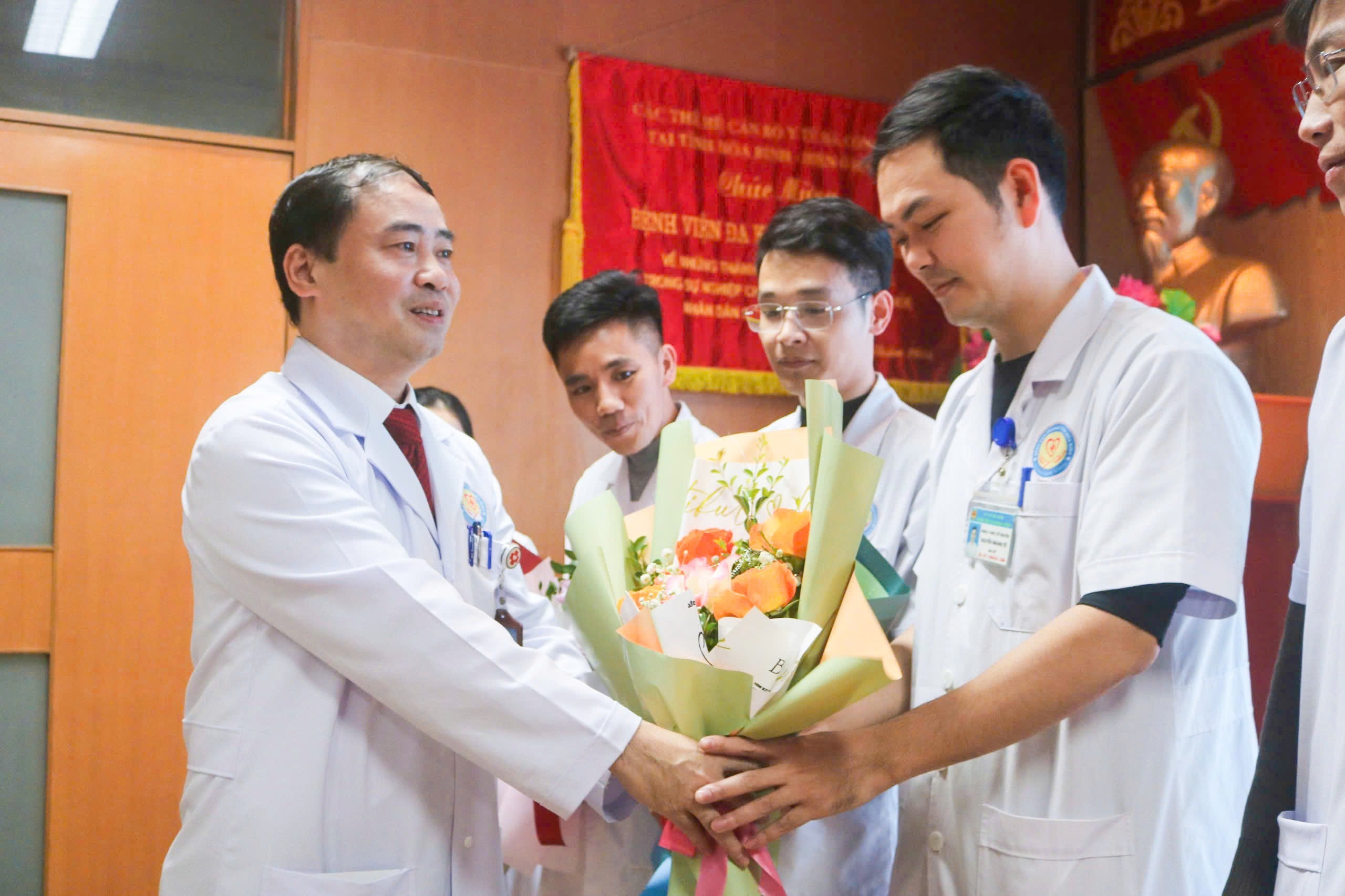 Ban Giám đốc Bệnh viện chụp ảnh lưu niệm cùng các cán bộ hoàn thành chương trình học sau đại học năm 2024