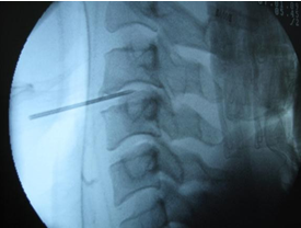 Hình 2. 4. Thay đĩa đệm cổ mềm, kiểm tra vị trí đĩa đêm bằng C-arm