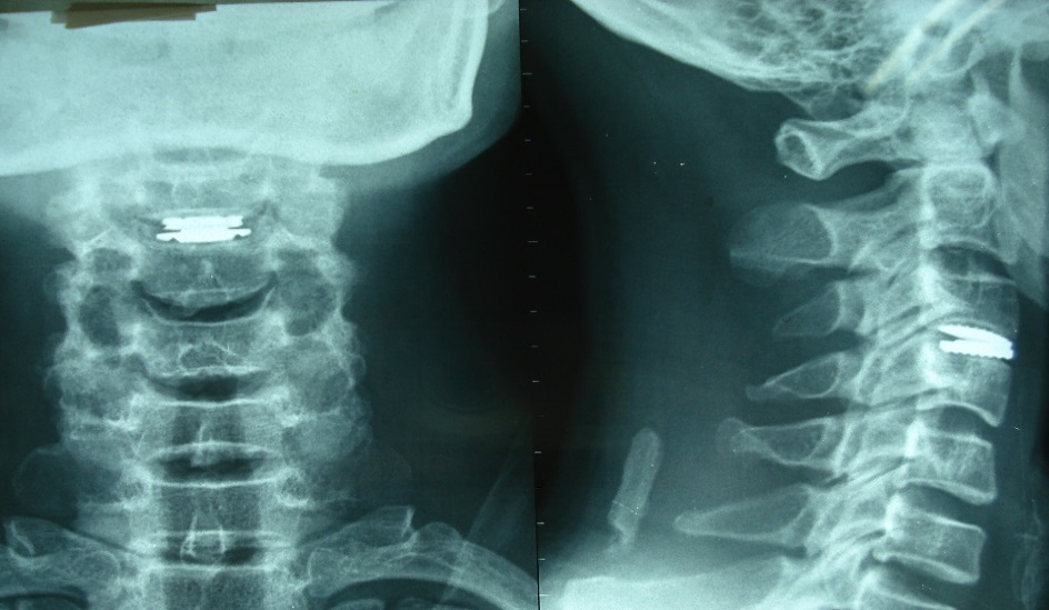 - Hình ảnh trên X quang quy ước (thẳng và nghiêng): Để đánh giá sự hàn xương sau mổ dựa trên phim X quang cột sống cổ nghiêng ở hai tư thế gấp cổ và ngửa cổ tối đa.