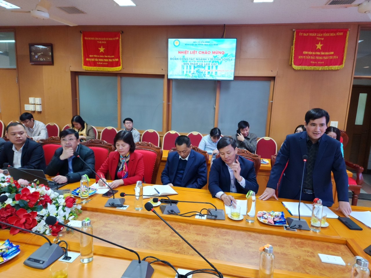Ngày 16/2/2023, Đoàn công tác ngành Y tế tỉnh Sơn La gồm Sở Y tế Sơn La, Bệnh viện Đa khoa tỉnh Sơn La và Viettel Sơn La do Th.S, BS Trần Thanh Bình, Phó Giám đốc Sở Y tế Sơn La làm trưởng đoàn đã đến tham và trao đổi kinh nghiệm Bệnh án điện tử và Bệnh viện thông minh tại Bệnh viện Đa khoa tỉnh Hoà Bình. Tiếp đoàn có TS.BS Trương Như Hiển, Phó Giám đốc Bệnh viện; BS.CKII Nguyễn Quốc Phương, Phó Giám đốc Bệnh viện cùng lãnh đạo một số khoa, phòng.