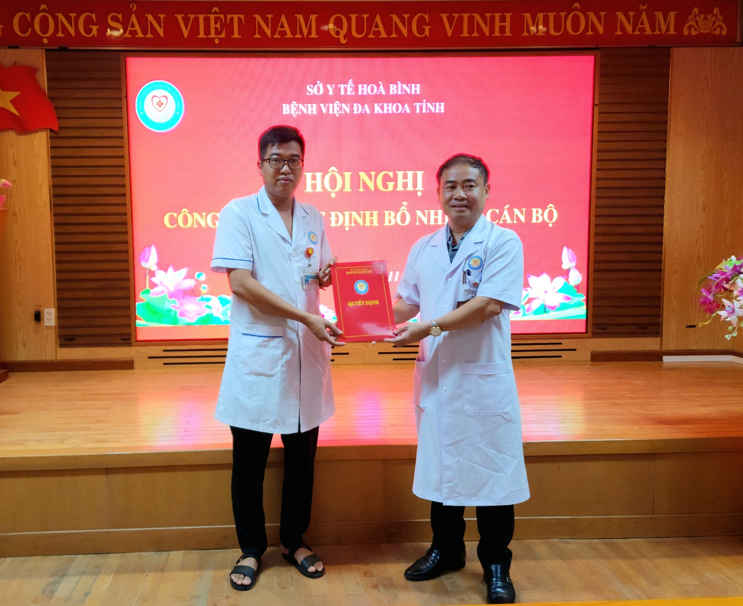 Ngày 11/9/2023, Bệnh viện Đa khoa tỉnh Hoà Bình long trọng tổ chức Hội nghị công bố các Quyết định bổ nhiệm cán bộ tháng 11/2023. TS.BS Nguyễn Hoàng Diệu, Bí thư Đảng uỷ, Giám đốc Bệnh dự và chủ trì Hội nghị.