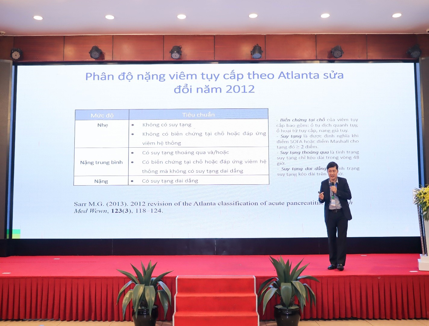 TS. Nguyễn Hữu Quân- Phó Giám đốc Trung tâm Cấp cứu A9, Bệnh viện Bạch Mai trình bày cập nhật Lọc máu hấp phụ trên bệnh nhân viêm tụy cấp