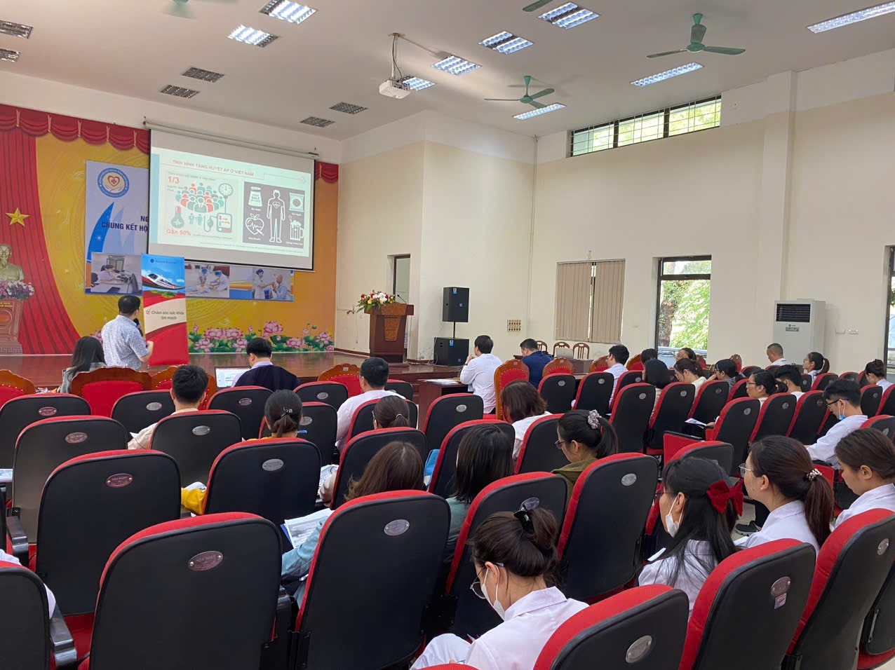Ngày 03/12, Bệnh viện Đa khoa tỉnh Hòa Bình tổ chức Hội thảo khoa học chủ đề “Tiếp cận toàn diện trong điều trị các bệnh lý tim mạch - Từ lý thuyết đến thực hành lâm sàng”. Tham dự có BS.CKII Trần Hoàng Dương, Phó Giám đốc Bệnh viện cùng 60 học viên là các bác sĩ đến từ các cơ sở y tế trong toàn tỉnh. Báo cáo viên là BS.CKII.BSNT Nguyễn Hữu Tuấn, Phó khoa C5, Viện tim mạch Quốc Gia Việt Nam và ThS. BSNT Lê Văn Tuấn, Bác sĩ Viện Tim mạch Quốc Gia Việt Nam, Bệnh viện Bạch Mai.
