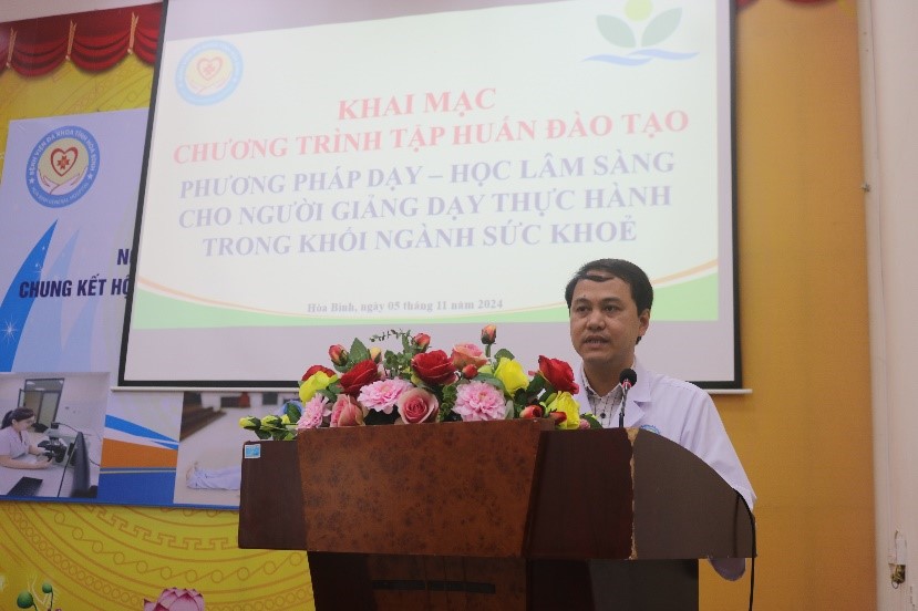 Ngày 5/11, Bệnh viện Đa khoa tỉnh Hòa Bình phối hợp với Bệnh viện Bạch Mai tổ chức khai giảng khóa đào tạo “Phương pháp dạy, học lâm sàng cho người giảng dạy, thực hành trong khối ngành sức khỏe”. Tham dự có BS.CKII Trần Hoàng Dương, Phó Giám đốc Bệnh viện, đại diện các khoa, phòng cùng 50 học viên đến từ các khoa lâm sàng và cận lâm sàng trong toàn Bệnh viện. Báo cáo viên tại chương trình có Th.S Phạm Thị Hương Giang, Th.S Nguyễn Đức Thịnh và Th.S Vũ Văn Nhân đến từ Viện Đào tạo và nghiên cứu Y dược, Bệnh viện Bạch Mai.