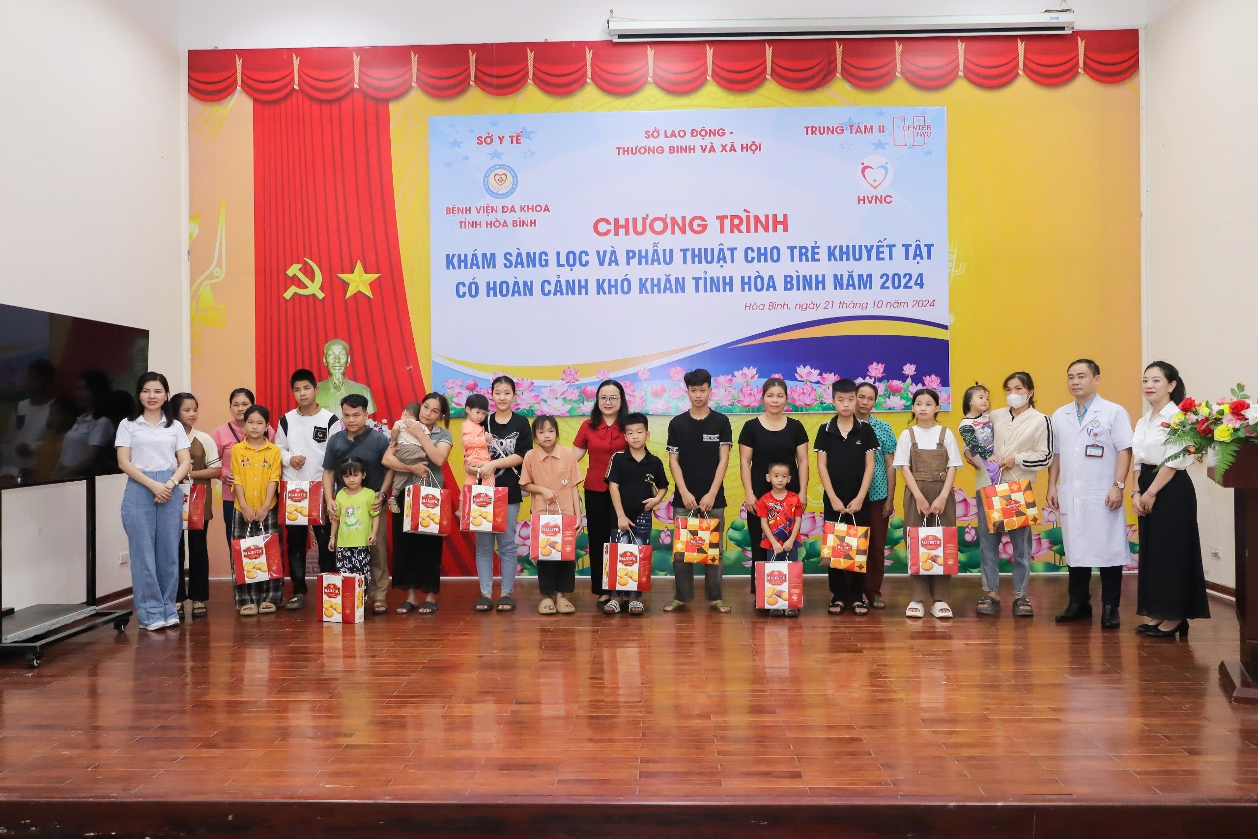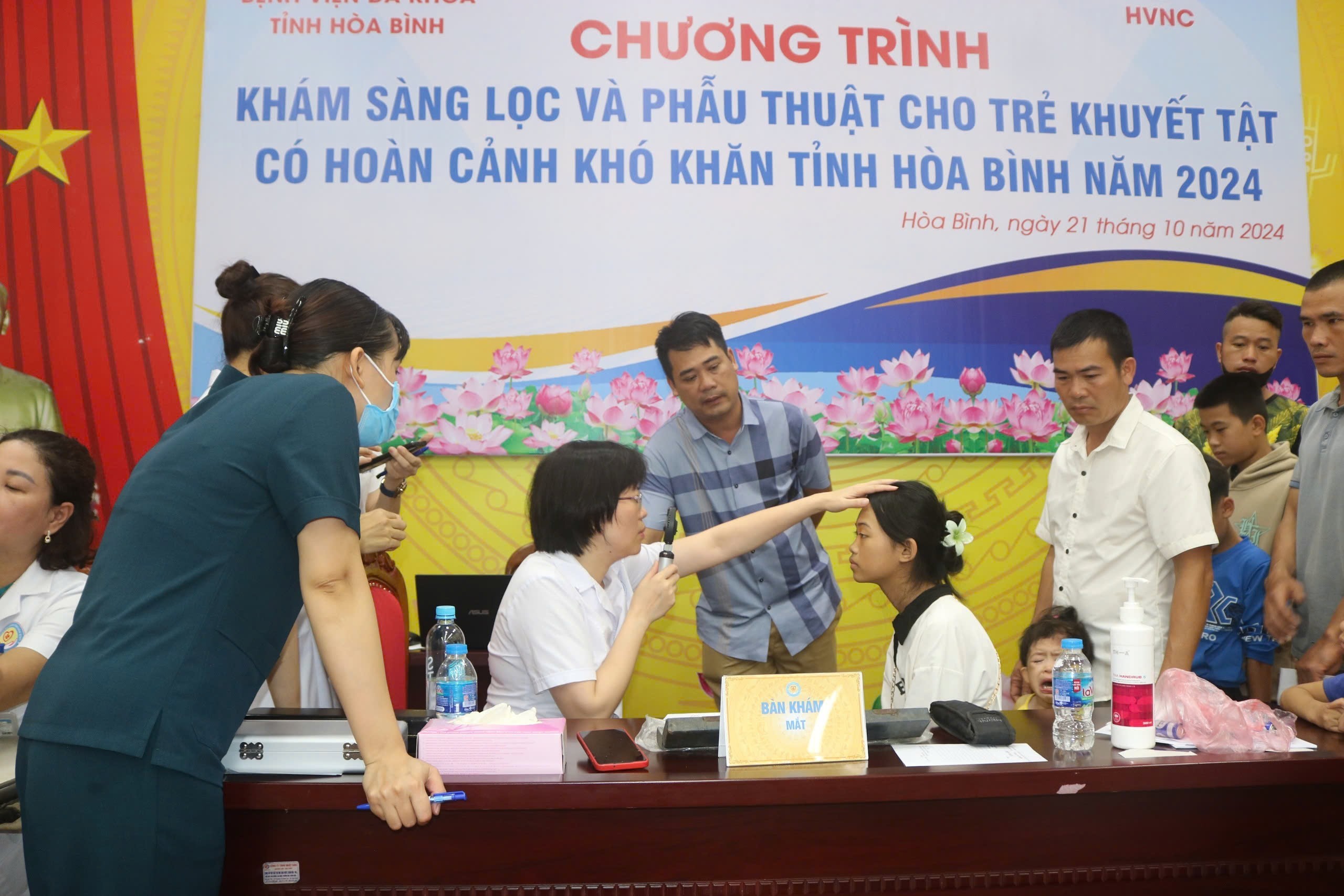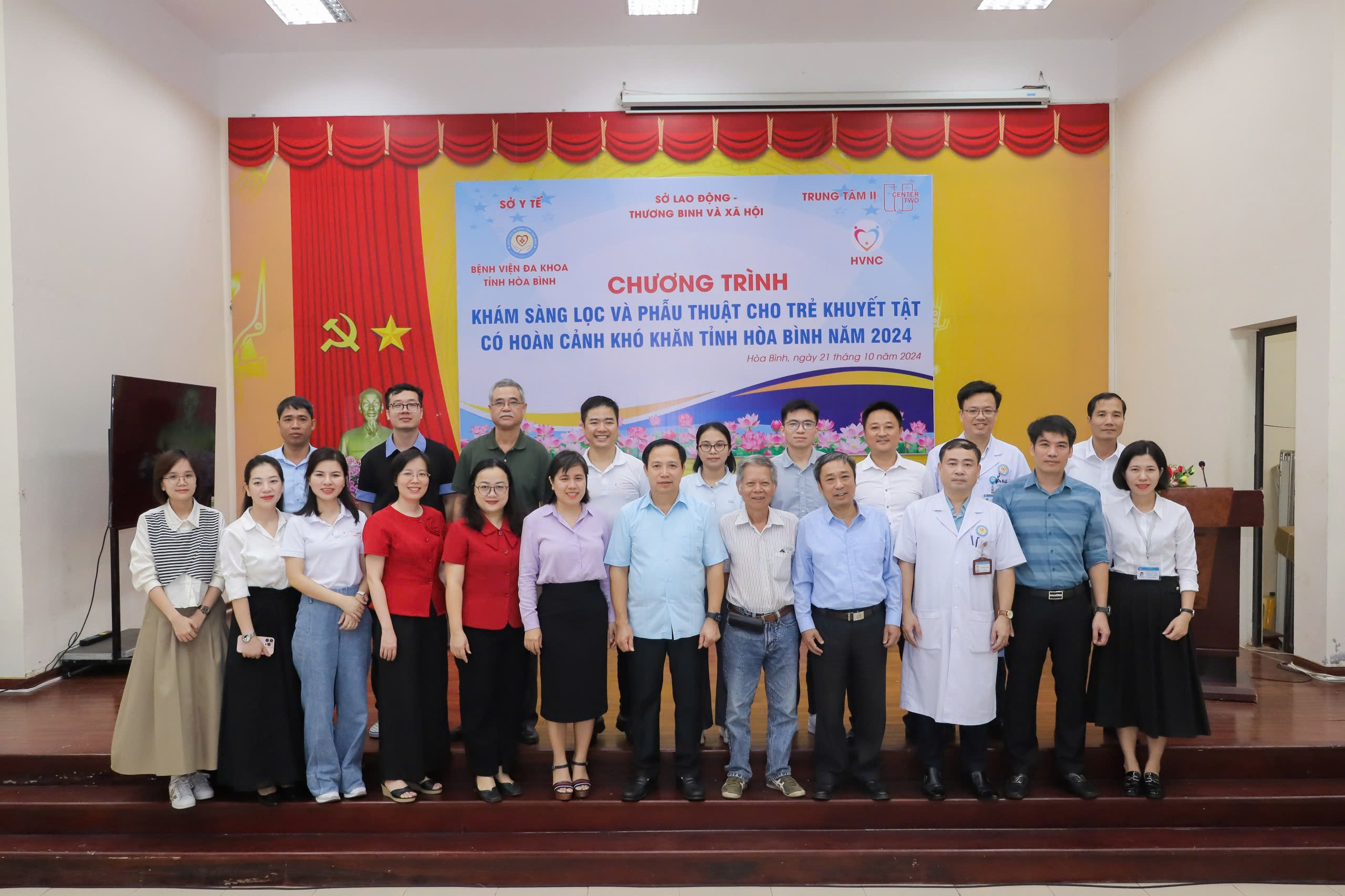 Ngày 21/10, tại Bệnh viện Đa khoa tỉnh Hòa Bình đã diễn ra chương trình Khám sàng lọc, hội chẩn và phẫu thuật cho trẻ em khuyết tật tỉnh Hòa Bình năm 2024. Dự và chỉ đạo chương trình có đồng chí Nguyễn Văn Toàn, Ủy viên BTV Tỉnh ủy, Phó Chủ tịch Thường trực UBND tỉnh. Tham dự còn có đại diện lãnh đạo Sở Lao động – Thương binh và Xã hội, Sở Y tế, Trung tâm II thuộc Hội cứu trợ trẻ em tàn tật Việt Nam, lãnh đạo Bệnh viện Đa khoa tỉnh, các bác sĩ là chuyên gia đầu ngành trong các lĩnh vực Mắt, Tai – Mũi – Họng, Chấn thương chỉnh hình, tạo hình thẩm mỹ, Ung bướu, Tiết niệu nam học đến từ các bệnh viện lớn như Bệnh viện Hữu nghị Việt Đức, Bệnh viện Mắt trung ương, Bệnh viện Bạch Mai, Bệnh viện Xanh Pôn, Trung tâm Chỉnh hình – Phục hồi chức năng Vinh, Bệnh viện Đại học Y Hà Nội và Bệnh viện Đa khoa tỉnh Hòa Bình.