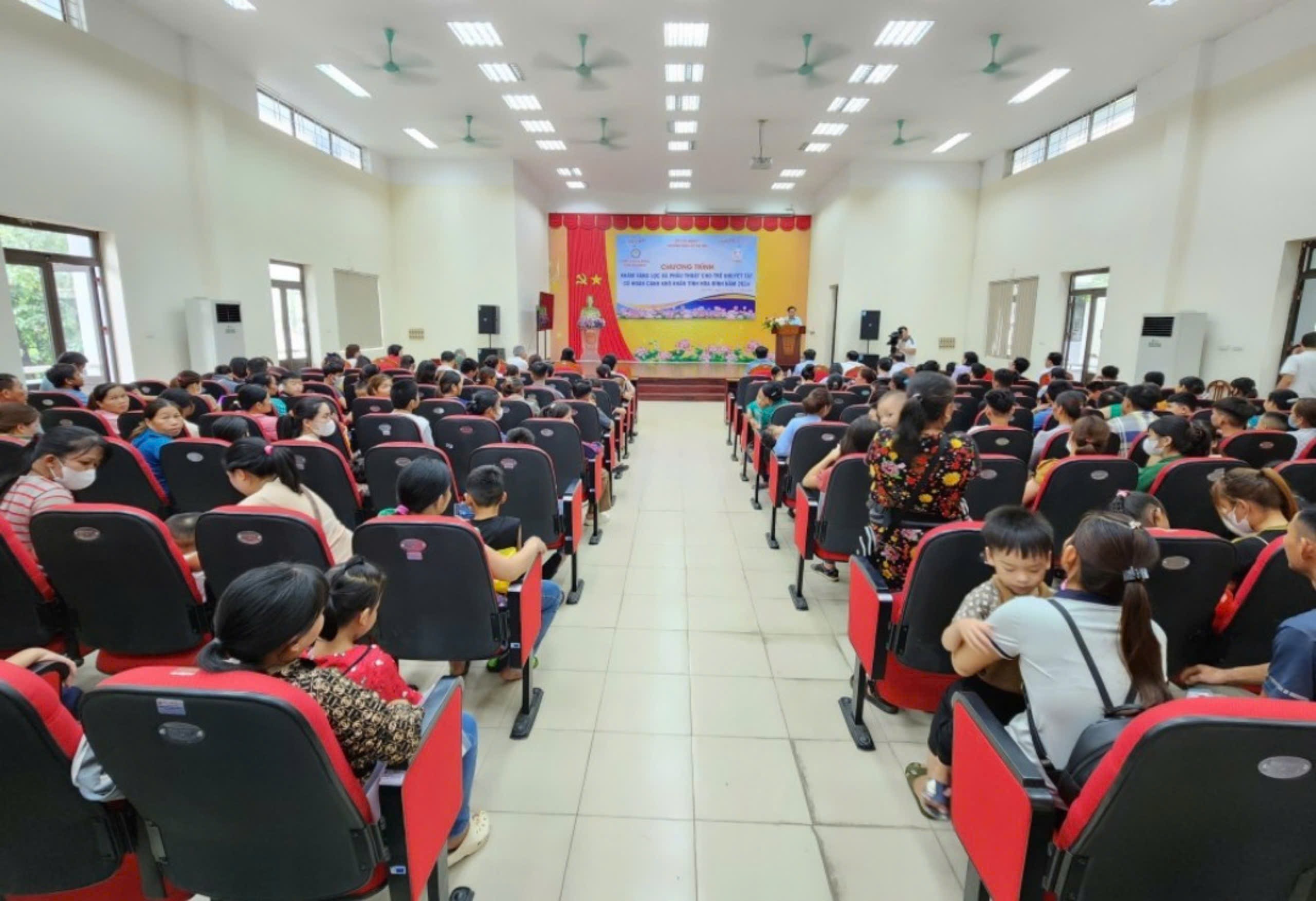 Tại chương trình, trên 200 trẻ (bao gồm 113 trẻ có giấy hẹn đã được khám sàng lọc đợt I toàn tỉnh từ 30/9 đến ngày 02/10/2024 và các trẻ không có giấy hẹn) đã được khám sàng lọc phân loại khuyết tật. Đây là các trẻ có độ tuổi từ 0-16 tuổi bị các dị vật: Dị tật vùng mặt (gồm: sứt môi, hở hàm ếch, rách mép, khuyết mũi,….); dị tật vận động (gồm: Khòng khèo tứ chi, vẹo gù cột sống,..); di chứng sau bỏng (gồm: Các sẹo xấu làm biến dạng các bộ phận cơ thể.); dụ tật mắt (gồm: lác mắt, sụp mi, đục thuỷ tinh thể,..); dị tật vùng dinh dục, hậu môn (gồm: Thoát vị bẹn, thoát vị rốn, tràn dịch màng tinh hoàn, ẩn tinh hoàn, lỗ tiểu lệch thấp, dính màng âm đạo, hẹp bao quy đầu, phình đại tràng,…); dị tật tai mũi họng (gồm: Đau tai, khiếm thính do viêm các bộ phận bên trong...) và các loại u lành tính khác.
