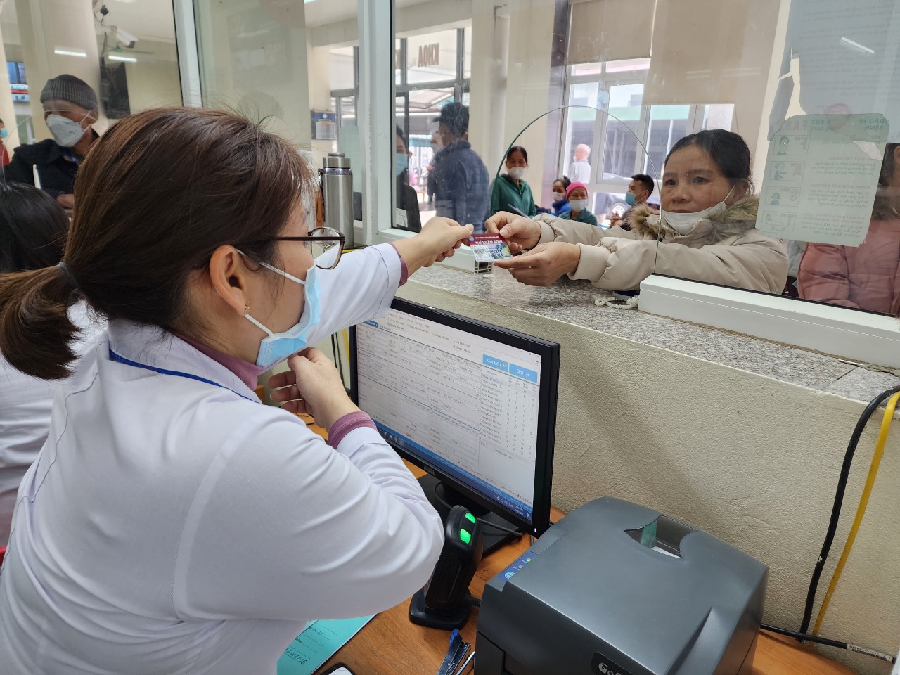 Người bệnh nhận thẻ khám chữa bệnh tại quầy đăng ký khám