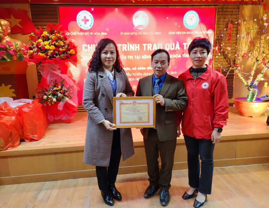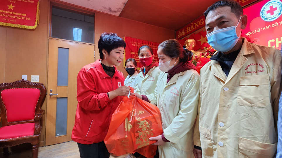 Theo đồng chí Đặng Bích Ngọc, Phó Chủ tịch TT Ủy ban MTTQ VN tỉnh, lần tặng quà này, Ủy Ban MTTQ VN tỉnh Hòa Bình có 200 suất. Hội Chữ thập đỏ thành phố cùng các nhà hảo tâm có 200 suất quà gửi tới các bệnh nhân và gia đình. Mỗi suất gồm một phần quà và một lì xì tiền mặt, tổng trị giá quà tặng là 155 triệu đồng. Đồng Chí Ngọc mong rằng, những món quà tuy nhỏ nhưng đong đầy tình cảm của các đồng chí lãnh đạo, các đơn vị và cá nhân hảo gửi gắm, mong bệnh nhân đón một Tết Quý mão vui vẻ, đầm ấm và mau chóng khỏi bệnh trở về với gia đình.